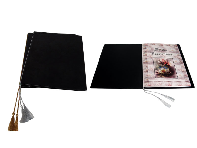 Lisätietoja: adressikansiot saatavilla kaikissa perusväreissä. Kulta / hopea painatus mahdollisuus. Hopea tai kulta nauha. |