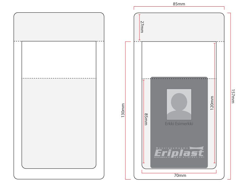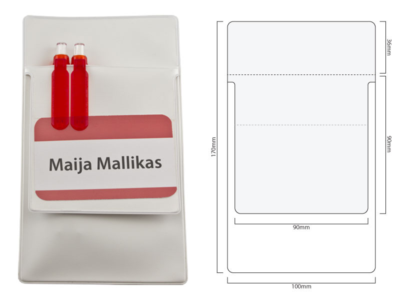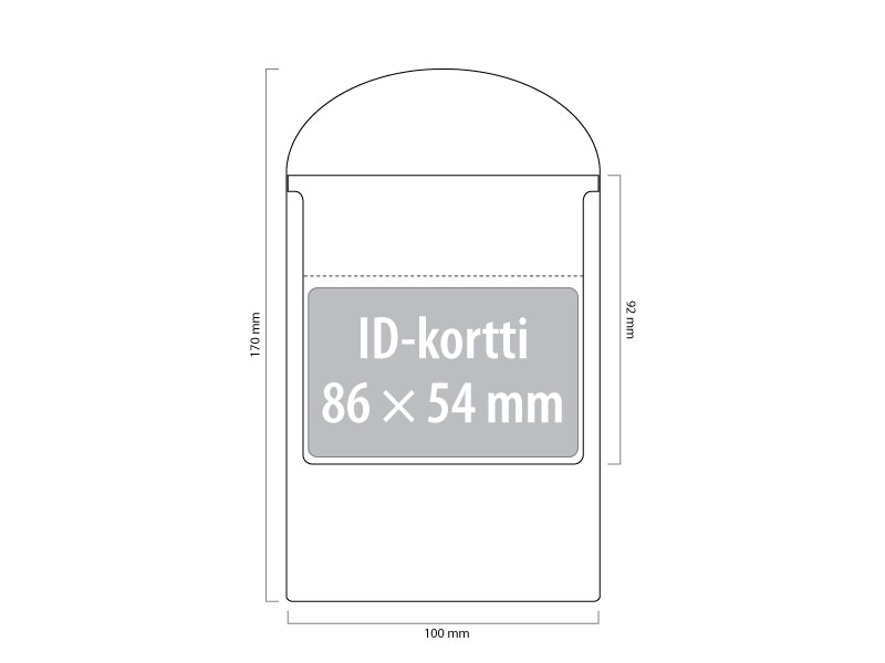 Tuote: kynätaskun suoja id-kortille (86mm x 54mm). Pystymalli. Painatuksella tai ilman. |